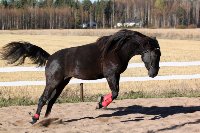 Oulu-turneelle mahtui myös kierros Lapin puolella Jessiä ja laumaansa moikatessa. Pikku-Viola oli kasvanut aivan mahdottomasti! Jessi toteutti edelliskertaisen uhkauksensa ja tyyräsi minut Vienan kyytiin. Miten voikin puolisiskokset olla niin samanlaisia. Jos olisin sulkenut silmät, olisin voinut väittää olevani Mailan kyydissä. Kiireinen mutta tasainen käynti, villinä pyörivät propellikorvat, lyhyt kaula, ja tunne, että alla oleva ruutitynnyri voisi räjähtää hetkenä minä hyvänsä, mutta luotto siihen, ettei se oikeasti mihinkään lähde.